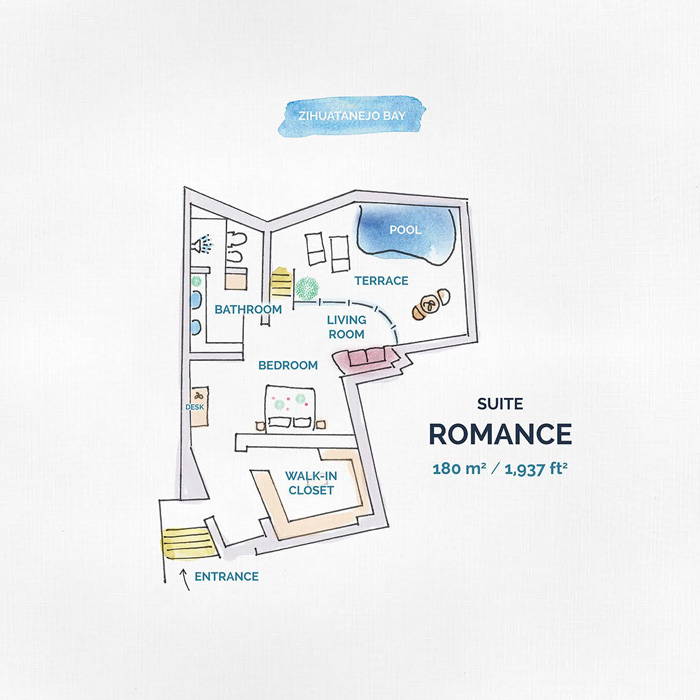 Bright and with a unique Mexican character. This suite offers an enchanting aura with original chuspata decorations made by Pátzcuaro artisans, cozy furnishings and a wonderful view to the heart of the bay.